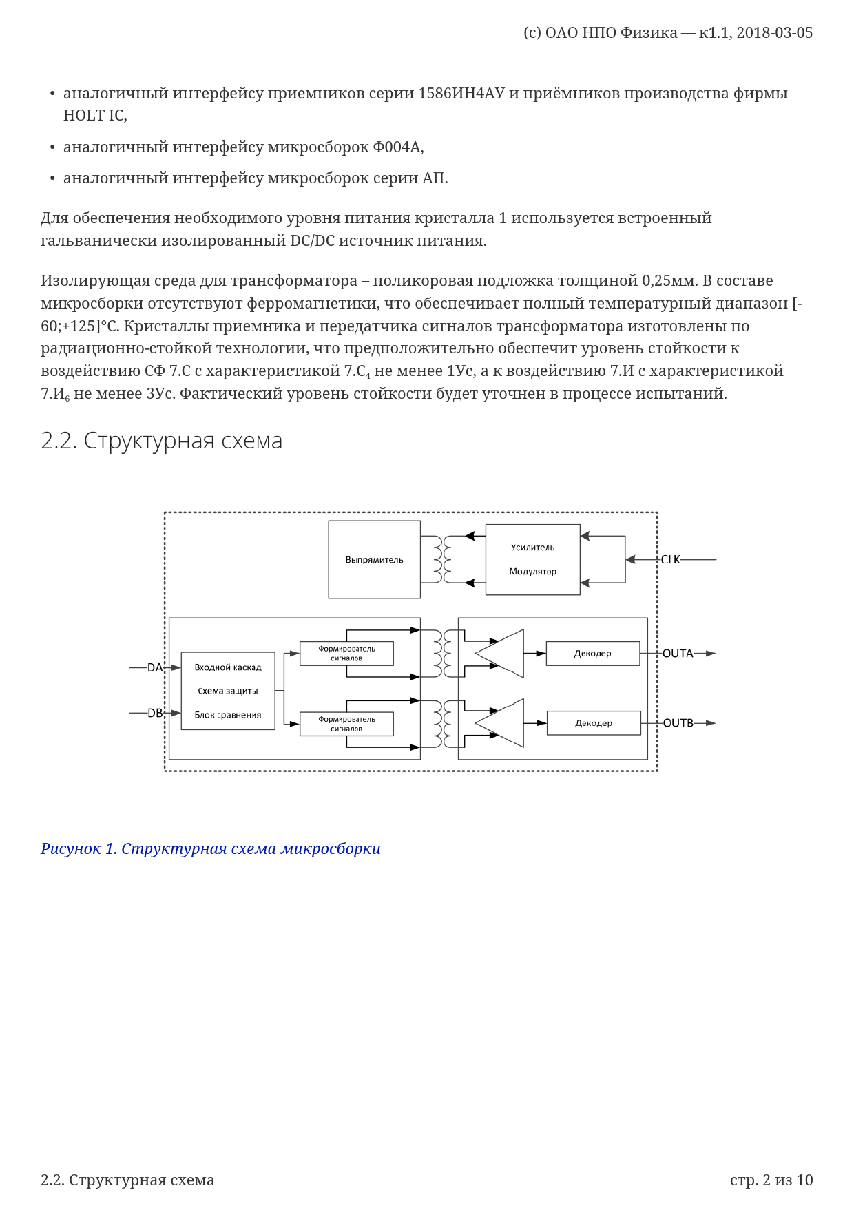 (c). ОАО. НПО. Физика — к1.1,. 2018-03-05. •. аналогичный. интерфейсу. приемников. серии. 1586ИН4АУ. и. приёмников. производства. фирмы. HOLT. IC,. •