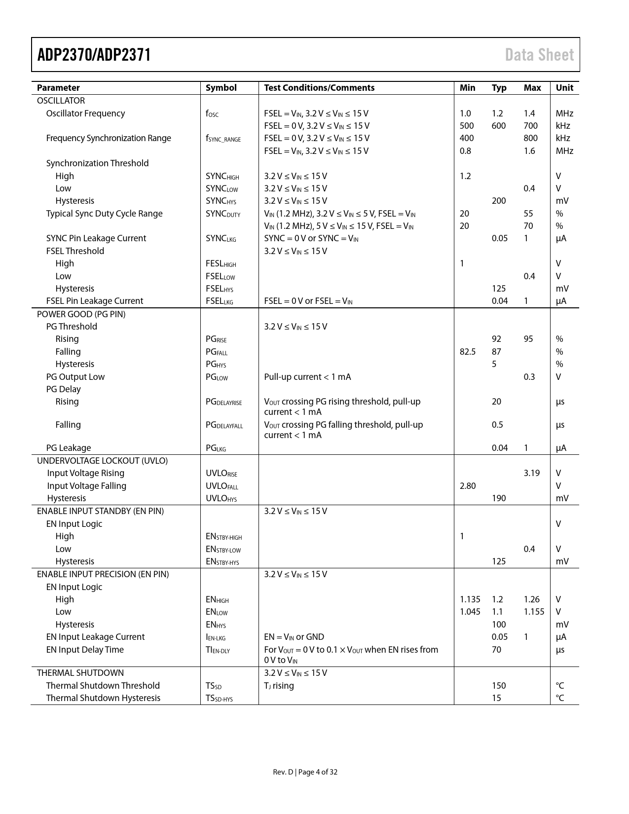 ADP2370/ADP2371. Data Sheet. Parameter. Symbol. Test Conditions/Comments. Min. Typ. Max. Unit