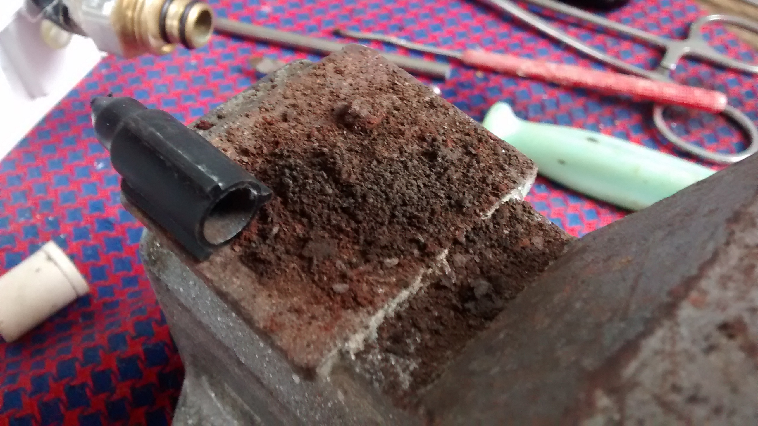 И теперь как выясняется нам необходимо извлечь поплавок с магнитом. Для этого нам понадобятся тонкие плоскогубцы и пинцет/зажим/самодельный крючок. Первая (белая) заглушка вытягивается очень легко за хвостовик (Рис.2). Со второй заглушкой немного сложнее, вытягивать ее нужно аккуратно и неспеша, дабы не повредить ее (лично я ее немного повредил, но это не сказалось на ее функциях). Я вытягивал ее сначала с помощью мед. зажима, а потом сделал из велосипедной спицы небольшой крючок и с помощью плоскогубцев потихоньку его подтягивал к краю патрубка.