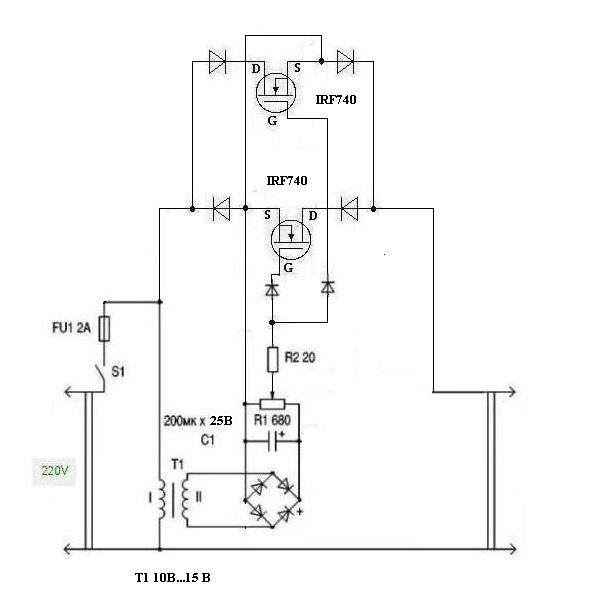 Доброго всем дня.Раскопал на просторах тырнета данную схему. Собрал на IGBT FGY75N60SMD. Работает не корректно: один из транзисторов греется. Нагружаю лампочкой 60вт. При включении в сеть на нагрузке 110...130 вольт, не зависимо от положения движка переменника, в течении 3-4 минут напруга уходит до 1..2 вольт, но это бывает не всегда. Планирую питать реактивную нагрузку. Тиристоры и симисторы не предлагать. Мож кто что подскажет???