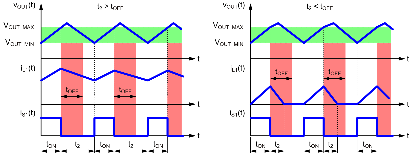 Рисунок 5. Понижающий преобразователь с гистерезисным методом управления с постоянным временем включения транзистора t