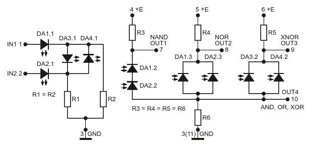 Рисунок 1. Электрическая схема универсального оптоэлектронного логического элемента