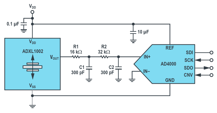 Рисунок 1. Пример схемы с акселерометром ADXL1002