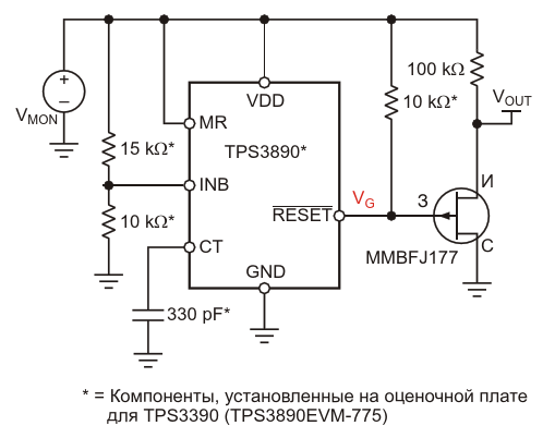 Рисунок 2. Супервизор TPS3700/1, сконфигурированный для контроля отрицательного напряжения
