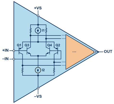 Рисунок 2. Упрощенная схема входного каскада rail-to-rail операционного усилителя на биполярных транзисторах