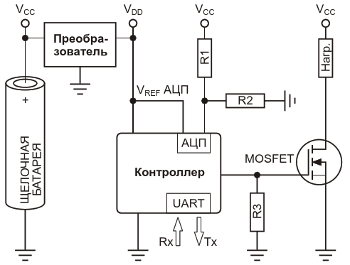 Рисунок 4. Алгоритм теста ЭДО, блок-схема которого показана на этом рисунке, подключает нагрузку, производит выборки напряжения в течение половины времени тестирования, а затем отключает нагрузку и прекращает выборку напряжений