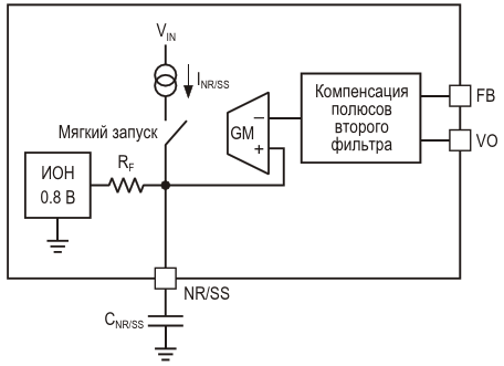 Блок-схема малошумящего понижающего преобразователя с фильтром напряжения опорного источника