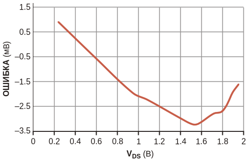 Рисунок 3. Измеренная ошибка тока смещения датчика ISFET очень мала