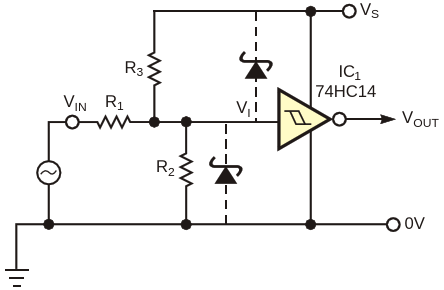 Рисунок 1. Эта схема на триггере Шмитта полезна дляпреобразования сигнала переменного тока в цифровую форму