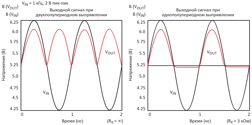 = ∞ получается двухполупериодный выпрямитель. Анализ в Spice предсказывает, что при R