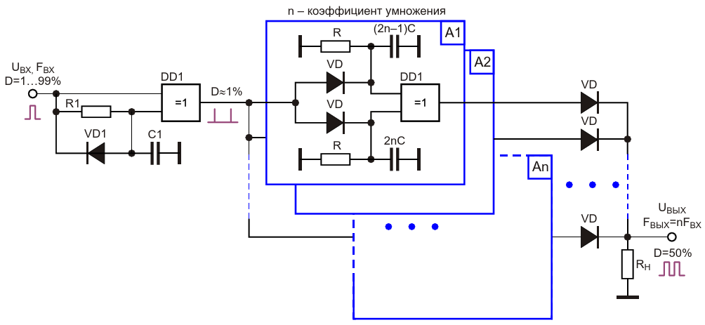 Рисунок 6. Умножитель частоты входных импульсов в n раз