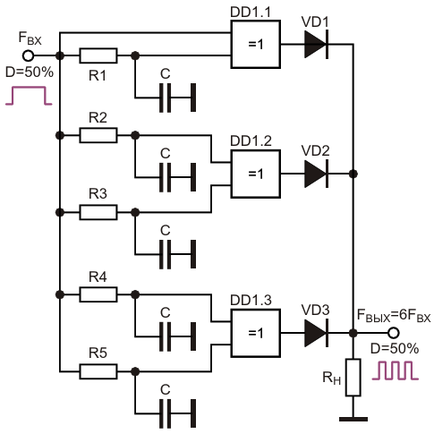 Рисунок 2. Умножитель (утроитель) частоты входных импульсов
