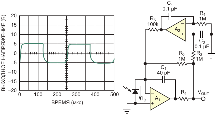 Схема восстановления постоянной составляющей расширяет диапазон выходных сигналов трансимпедансного усилителя до обоих квадрантов