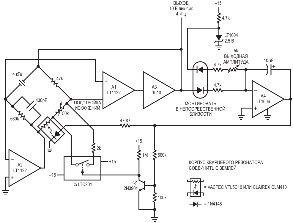 Генератор 4 кГц с кварцевой стабилизацией и искажениями 9 ppm