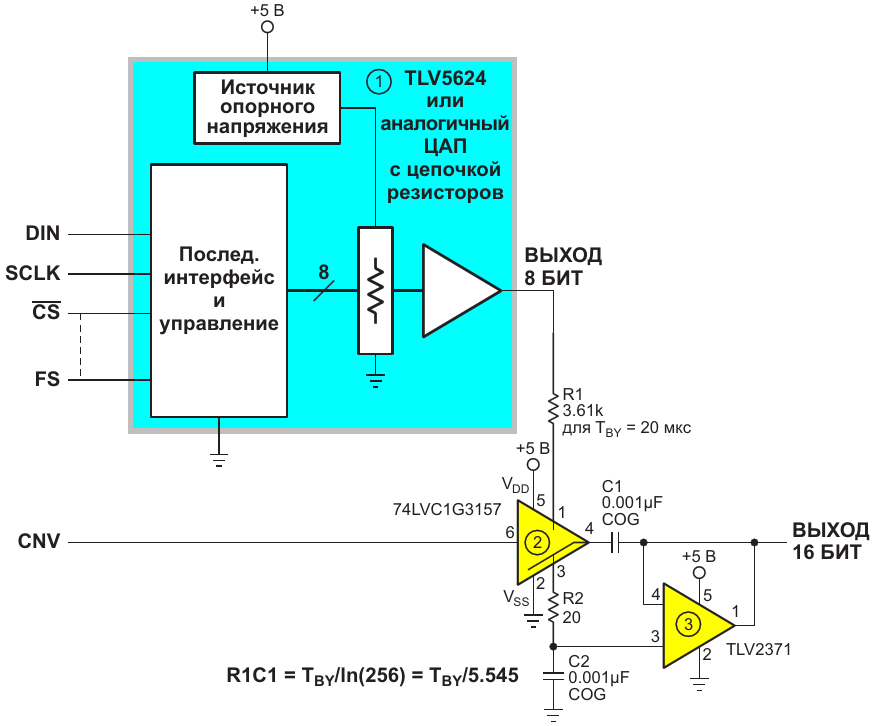 Рисунок 4. Применение принципа декодера Шеннона для увеличения разрешения 8-битного ЦАП