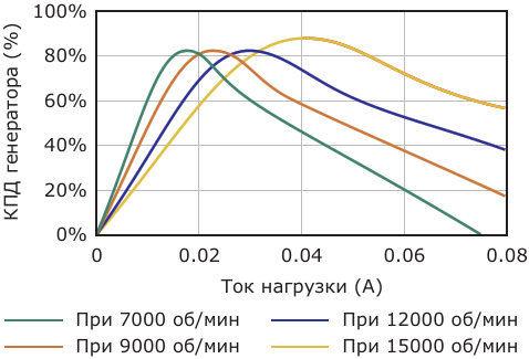 Рисунок 6. Зависимость КПД от тока нагрузки для двигателя 16C18