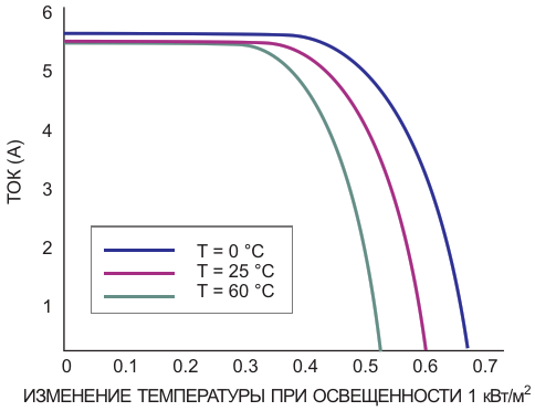 Выходное напряжение солнечного элемента уменьшается с повышением температуры