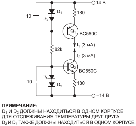 Рисунок 4. Если известно, какое значение бета больше, одно устройство можно заменить диодом D