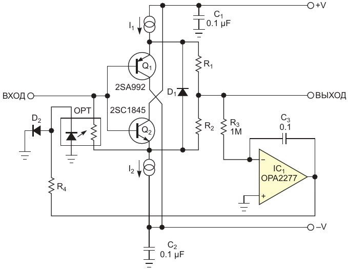Дискретный буферный усилитель с низким уровнем искажений для биполярных сигналов