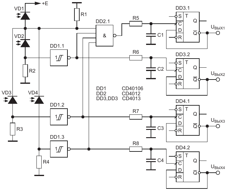 Рисунок 3. Четырехкомандный переключатель с оптоэлектронным управлением