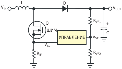 Эта схема отображает базовую топологию повышающего преобразователя