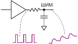 Рисунок 1. При подключении RC-фильтра к логическому элементу выходное напряжение имеет пульсации