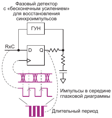 D-триггер и ГУН позволяют установить момент выборки в центре глазковой диаграммы сигнала