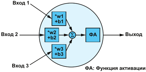 Нейрон с тремя входами и одним выходом