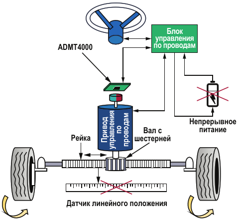 Рисунок 5. ADMT4000 в приложении преобразования углового перемещения в линейное