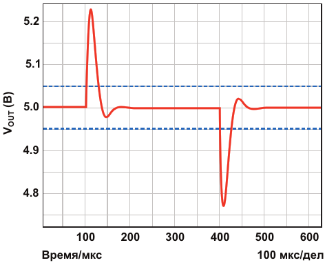 Рисунок 1. Типичная реакция источника питания на скачок нагрузки