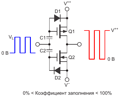 Рисунок 2. Связь по переменному току может решить проблему несоответствия напряжения на положительной шине, если управляющий сигнал подается непрерывно