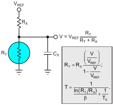 Рисунок 1. Базовая схема пассивного возбуждения термистора: емкость C