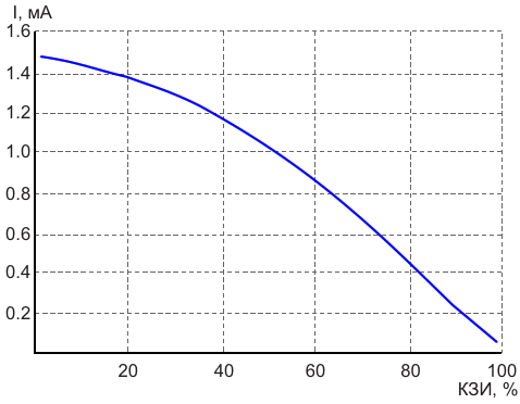 Рисунок 5. Зависимость тока в цепи коммутатора от коэффициента заполнения импульсов (КЗИ) при частоте коммутации 125 Гц