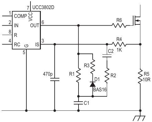 Рисунок 4. Ограничение пилообразного тока с таким же наклоном, с каким спадает ток индуктивности