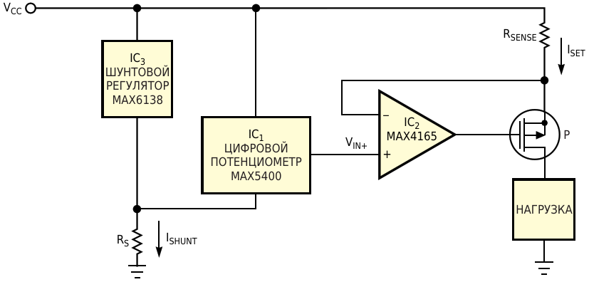 Этот программируемый источник тока подает ток в нагрузку 256 равными шагами