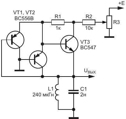 Рисунок 3. LC-генератор с эмиттерной связью с повышенной стабильностью частоты генерации и амплитуды выходного сигнала