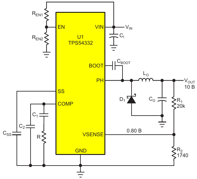 Добавьте один резистор, чтобы управлять выходным напряжением импульсного регулятора с помощью ЦАП