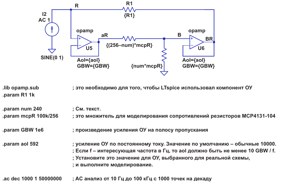 Для определения требований к операционному усилителю при работе с сигналами переменного тока можно использовать LTspice