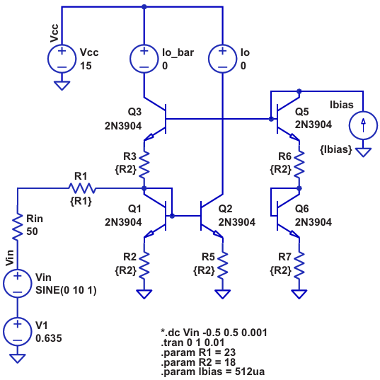Усилитель с большим динамическим диапазоном и дополнительными резисторами, помогающими сбалансировать изменения входного импеданса при больших размахах входного сигнала, сохраняя при этом одинаковое смещение коллекторного тока для каждого устройства, опре