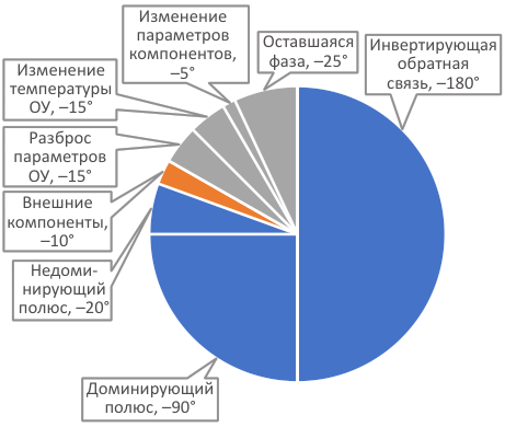 Рисунок 2. Расширенная секторная диаграмма фазового сдвига контура обратной связи усилителя
