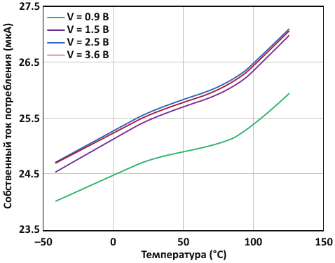 Потребляемый ток при различных напряжениях питания и в диапазоне рабочих температур
