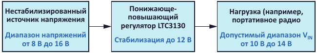 Система, в которой допустимый диапазон напряжений нагрузки уже возможного диапазона напряжений источника питания