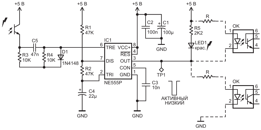 В ответ на нарастающий фронт входного сигнала схема генерирует чистый выходной импульс фиксированной длительности