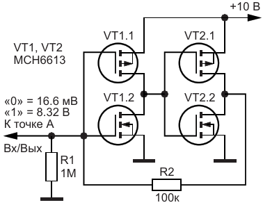 Рисунок 8. Элемент памяти - трехполюсник на основе КМОП-повторителя напряжения