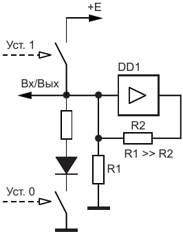 Рисунок 4. Вариант элемента памяти - трехполюсника на RS-триггере