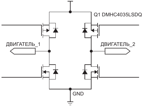Рисунок 4. Двунаправленное управление щеточным двигателем