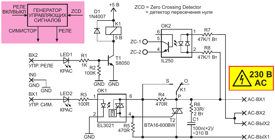 Минималистичный чертеж практического гибридного силового реле, разработанного специально для того, чтобы пробудить интерес у любознательных радиолюбителей