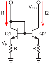 Рисунок 2. Токовое зеркало с использованием вырождения эмиттера