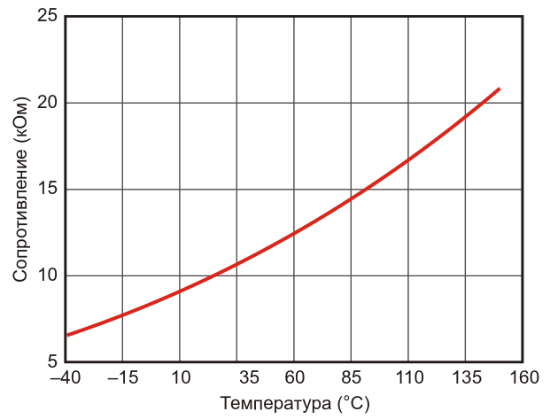 Типовая зависимость сопротивления от температуры датчика TMP61 демонстрирует довольно высокую степень линейности