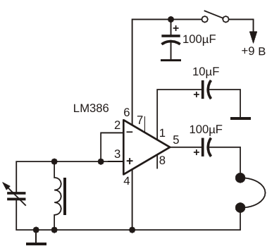 Рисунок 4. Эта схема показывает, как использовать LM386 в качестве средневолнового регенеративного приемника